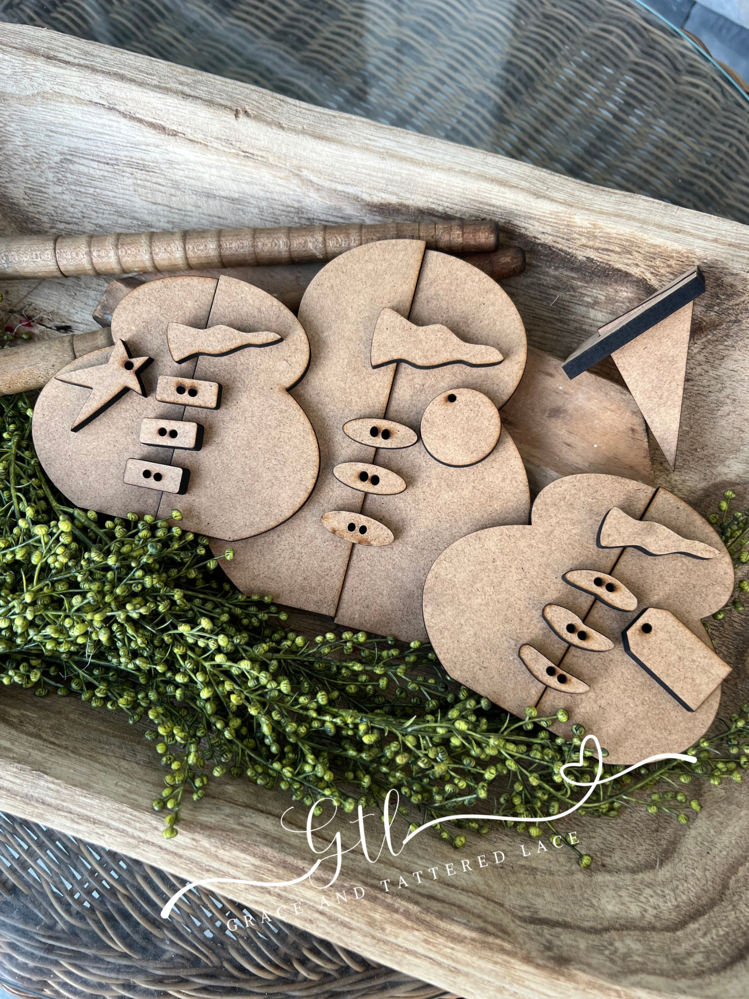 Rustic Faux Scrap Wood Snowman Trio Shelf Sitter #369