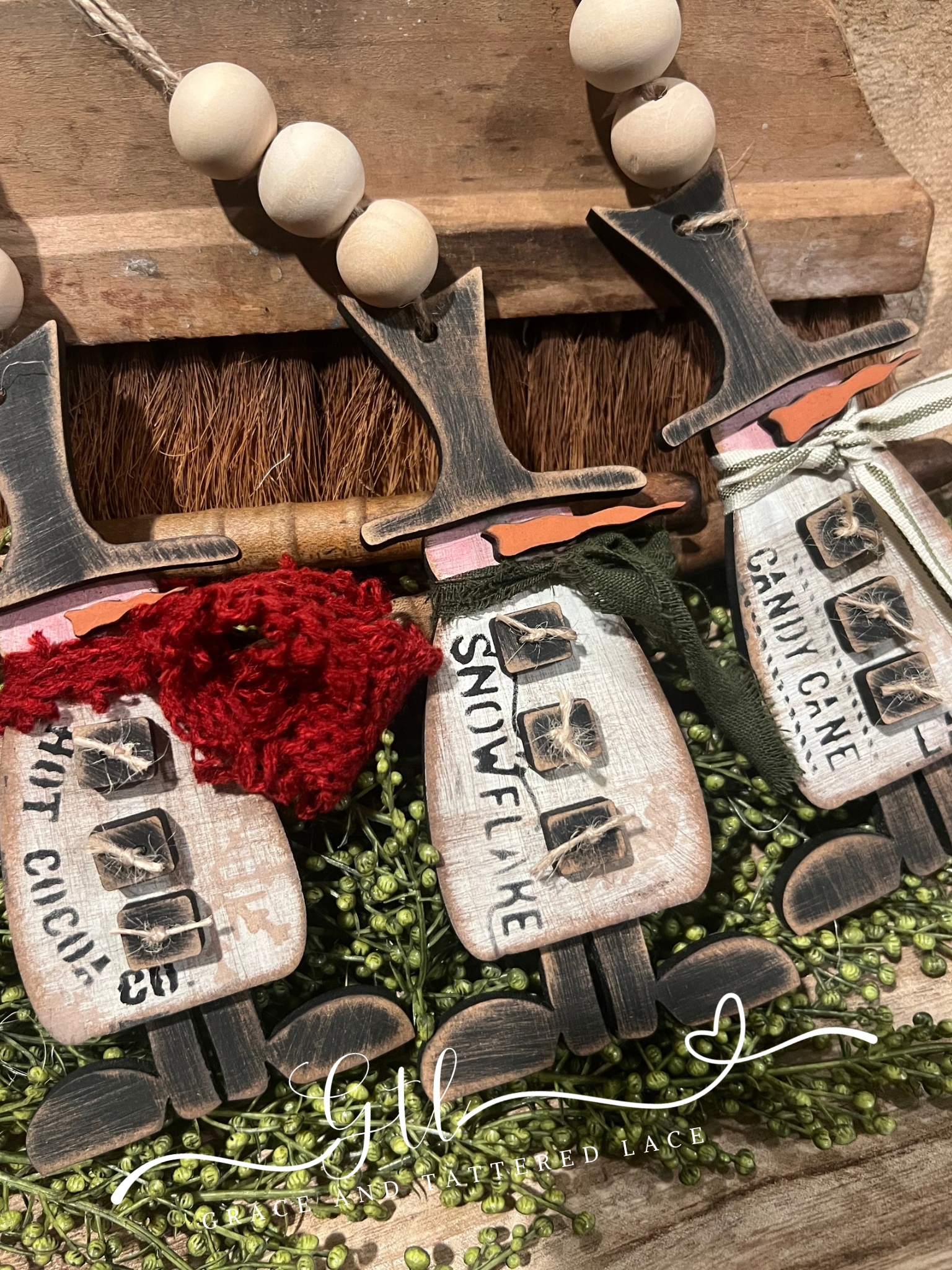 Wonky snowman with Big Shoes & Hat Ornament set (3 pieces ) #335