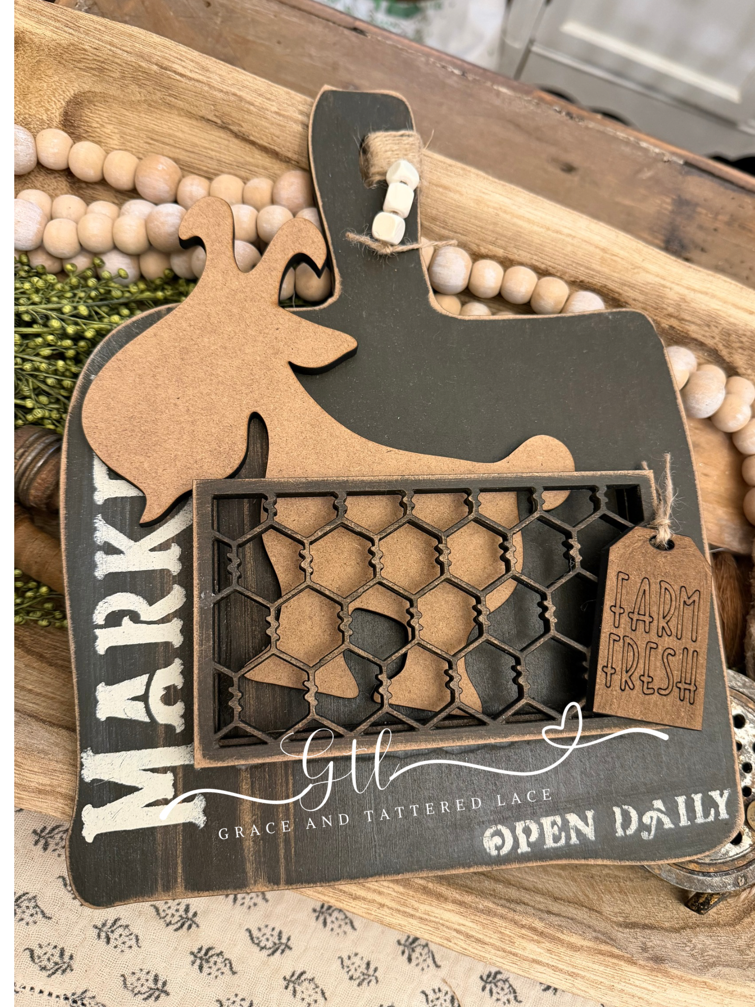 Wonky Goat Insert and Farm Fresh Tag ONLY (Fits interchangeable breadboard)#455