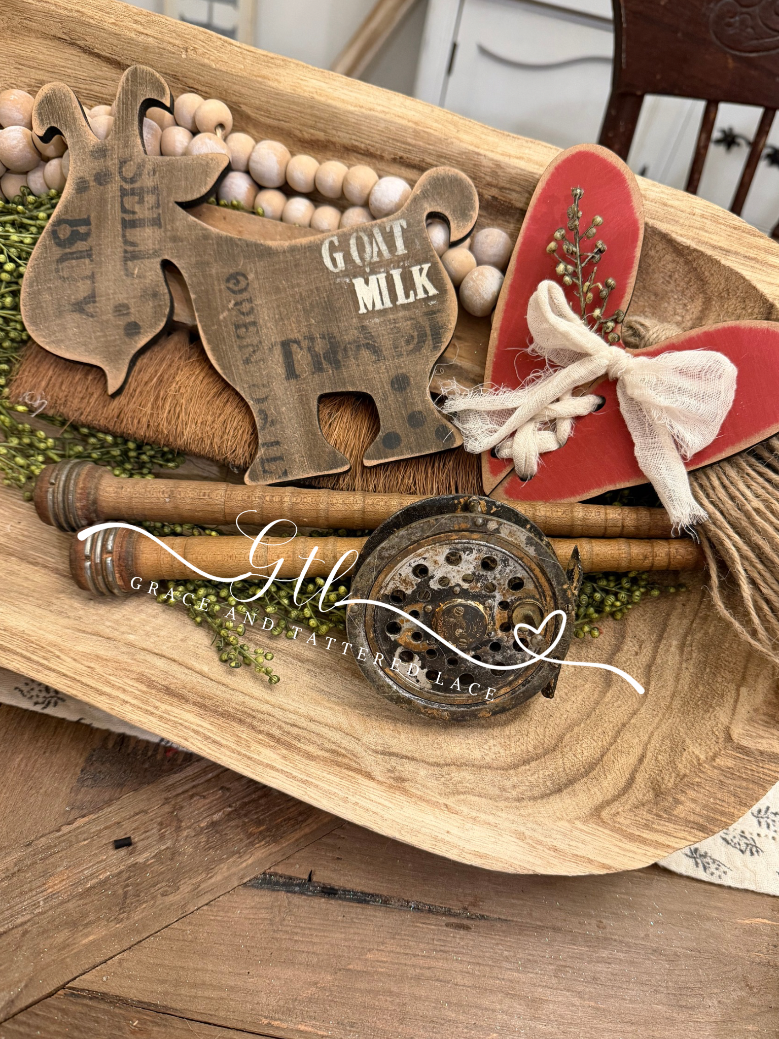 Cute wonky goat to go with the interchangeable breadboard DIY kit is ready for you to customize and fit your style! The goat is approximately 5.5" 5.6". This is the rooster/tag kit only!!! WONKY Faux chicken wire cutting board is sold separately!