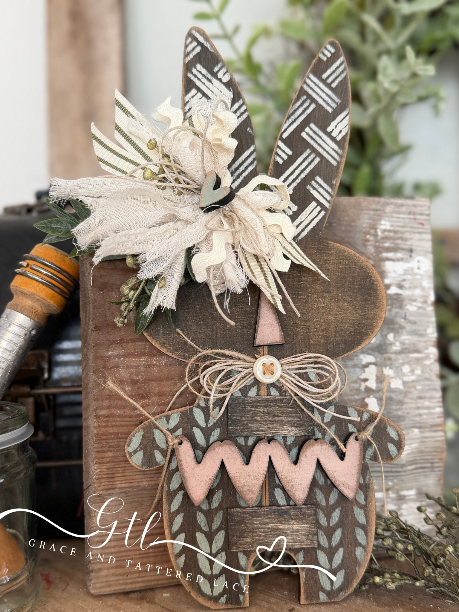 Wonky Split Bunny with Heart Banner #429