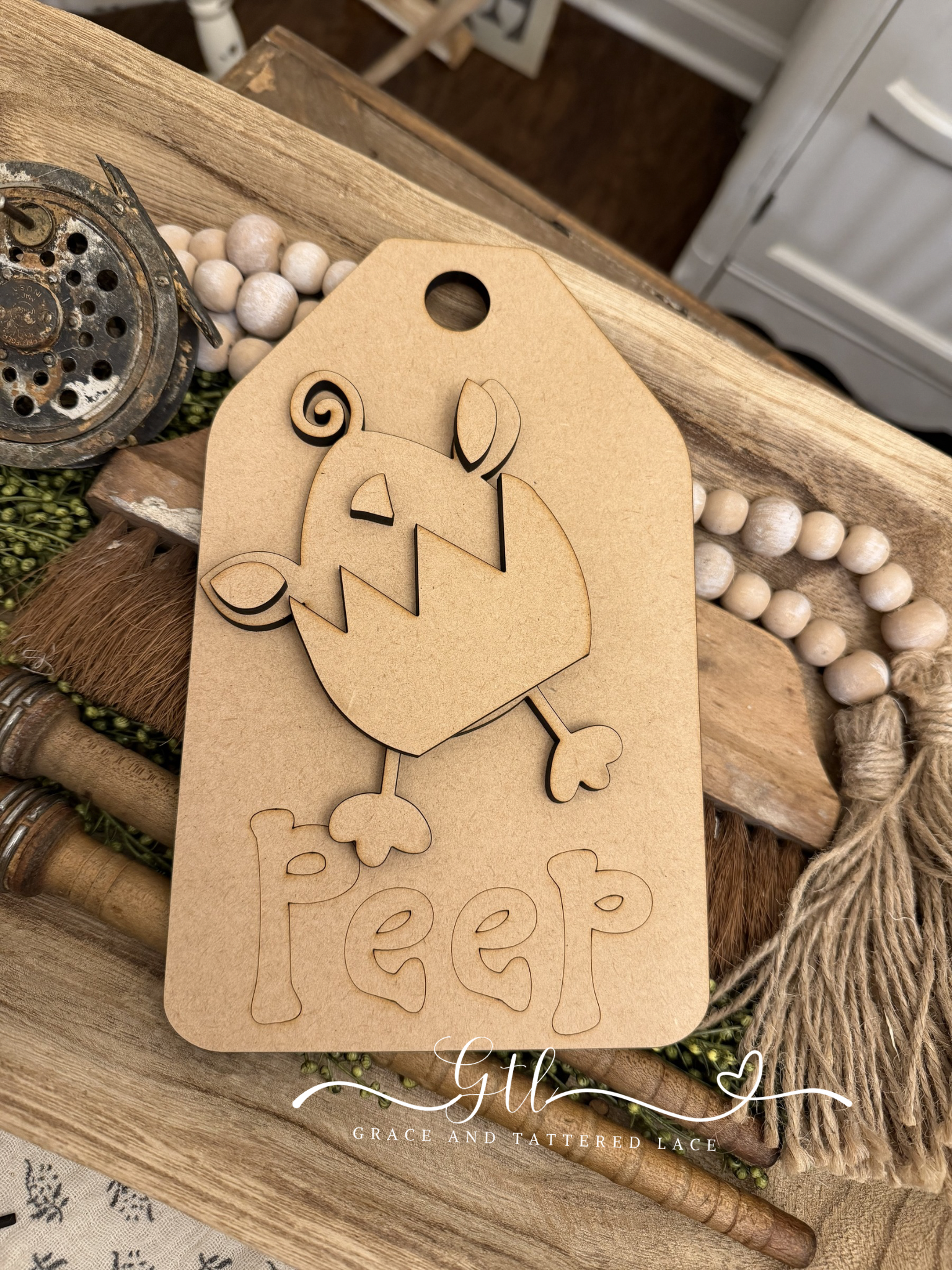 A cute chick with a traditional tag DIY kit is ready for you to customize and fit your style!