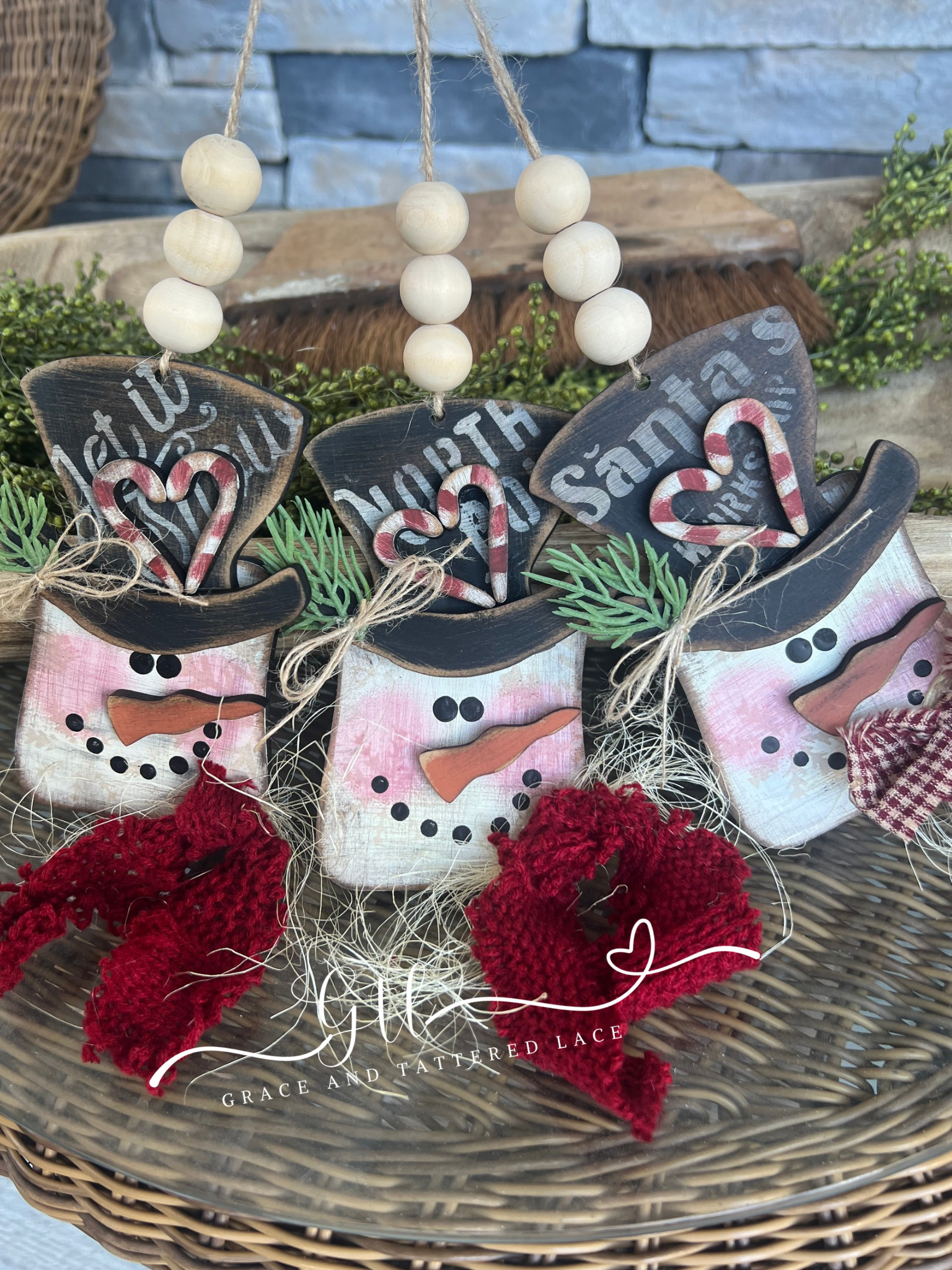 Wonky Square Snowman Ornament set (3 pieces ) #344